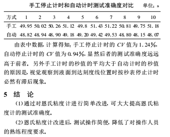 恩氏粘度計(jì)采用人工卡秒表的方式計(jì)時, 這樣就存在人為的操作誤差。 另外, 操作人員需用肉眼監(jiān)視量瓶中流入漿液的液面是否到達(dá)刻度線位置, 以停止秒表計(jì)時 , 這也勢必存在著視覺誤差。 操作誤差和視覺誤差必然導(dǎo)致其測試準(zhǔn)確度低。為盡量減小這些誤差, 操作人員需經(jīng)過長期訓(xùn)練, 而且**好能長期固定檢驗(yàn)人員, 不同檢驗(yàn)人員測得的數(shù)據(jù)的可比性較差。3 提高恩氏粘度計(jì)測試準(zhǔn)確度的措施